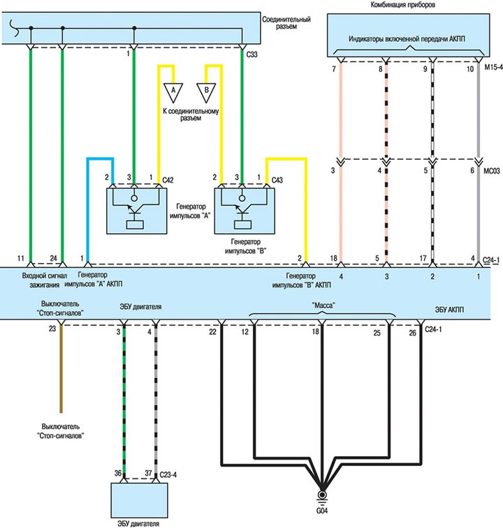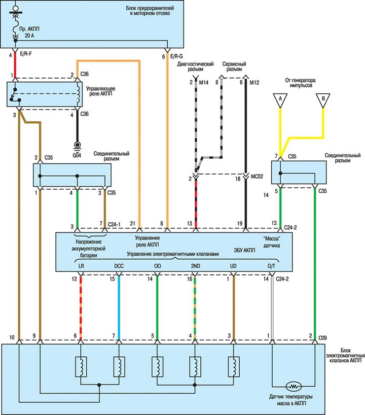 Хендай Санта Фе 2 (2007-2012): Схема системы управления АКПП (2,7 л)