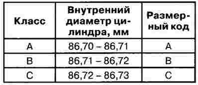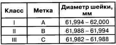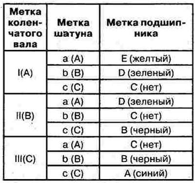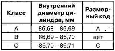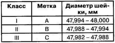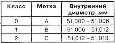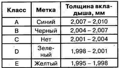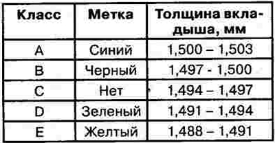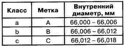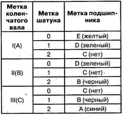 4) Подбор деталей по группе ремонтных размеров производится согласно таблице.