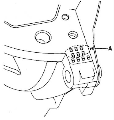 12. Проверить метки диаметра цилиндров (А) на поверхности блока цилиндров.