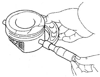 19. Измерить микрометром основной диаметр поршня (39 мм от днища). Номинальный диаметр поршня: 86,68 -86,71 мм. В случае сильного износа поршня необходимо заменить его новым.