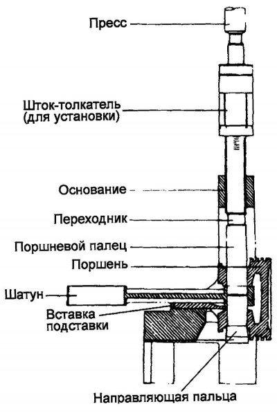 Рис. 2.75. Схема запрессовки пальца в поршень и верхнюю головку шатуна