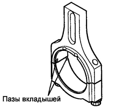 При установке нового шатуна убедитесь, что фиксирующие пазы вкладышей на шатуне и крышке шатуна расположены с одной стороны.