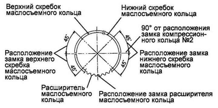 - маслосъемное кольцо - 0,2–0,7 мм.