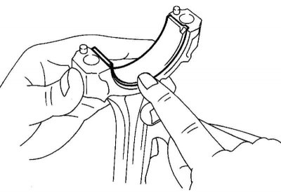 Рис. 2.85. Установка нижнего вкладыша коренного подшипника в крышку шатуна