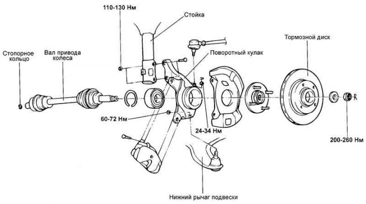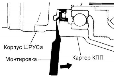 Внимание! Будьте осторожны при отсоединении вала привода колеса с помощью монтировки, не повредите картер коробки передач и ШРУС вала.