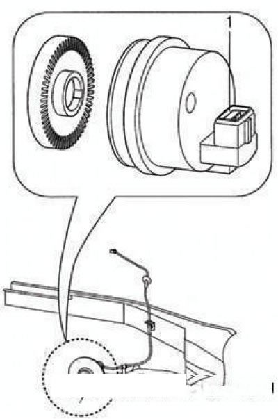 Сензор брзине задњег точка: 1 – сензор брзине задњег точка