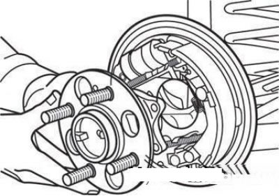 Уклоните главчину задњег точка кроз механизам кочнице.